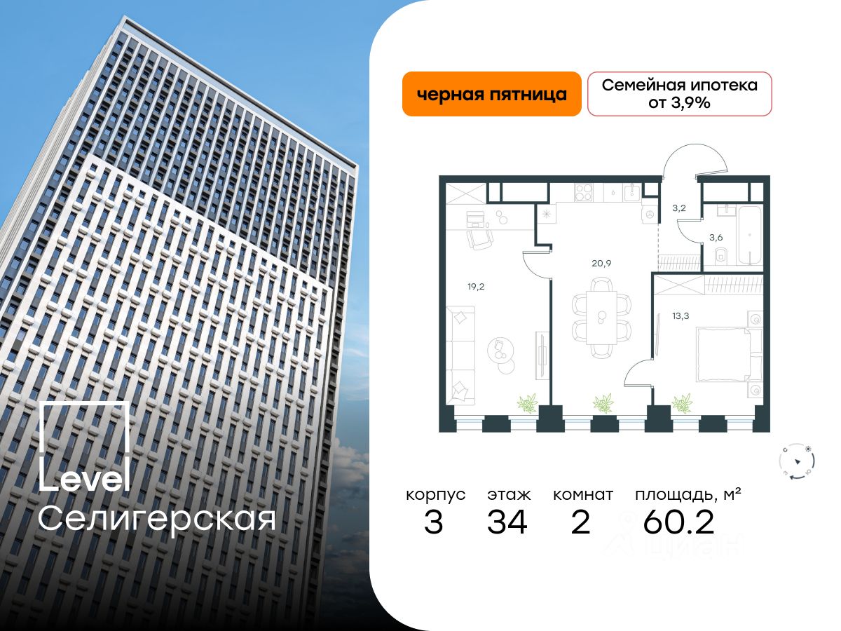 В жилом квартале, расположенном в южной части района Западное Дегунино, продаётся 2-комнатная квартира площадью 60.20 кв.м без отделки. Квартира расположена на 34 этаже 40-этажного корпуса Корпус 3 в жилом комплексе комфорт-класса Level Селигерская (компания Level Group/Левел групп).