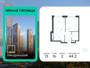 В жилом квартале, расположенном на границе с природным заказником "Долина реки Очаковки", продаётся 2-комнатная квартира площадью 44.20 кв.м без отделки. Квартира расположена на 16 этаже 31-этажного корпуса Корпус 13 в жилом комплексе бизнес-класса Level Мичуринский (компания Level Group/Левел групп).