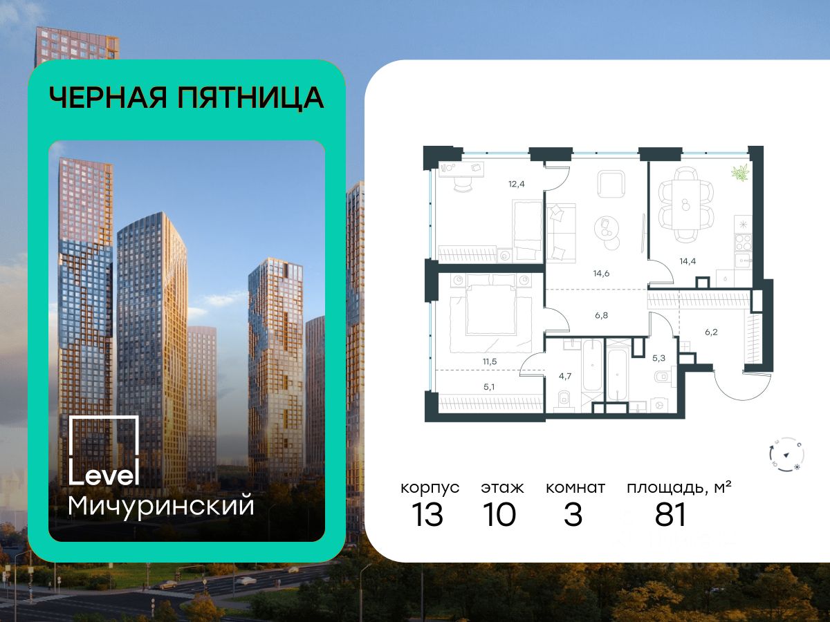 В жилом квартале, расположенном на границе с природным заказником "Долина реки Очаковки", продаётся 3-комнатная квартира площадью 81.00 кв.м без отделки. Квартира расположена на 10 этаже 31-этажного корпуса Корпус 13 в жилом комплексе бизнес-класса Level Мичуринский (компания Level Group/Левел групп).