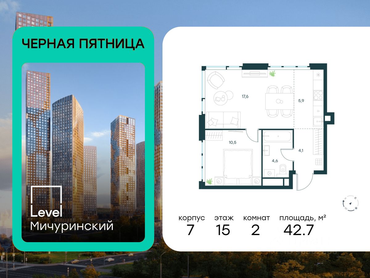 В жилом квартале, расположенном на границе с природным заказником "Долина реки Очаковки", продаётся 2-комнатная квартира площадью 42.70 кв.м без отделки. Квартира расположена на 15 этаже 24-этажного корпуса Корпус 7 в жилом комплексе бизнес-класса Level Мичуринский (компания Level Group/Левел групп).