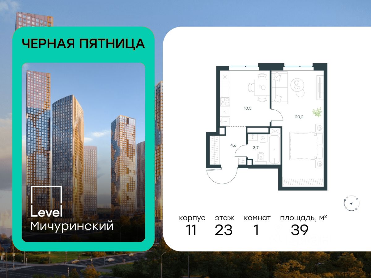 В жилом квартале, расположенном на границе с природным заказником "Долина реки Очаковки", продаётся 1-комнатная квартира площадью 39.00 кв.м с отделкой white box. Квартира расположена на 23 этаже 24-этажного корпуса Корпус 11 в жилом комплексе бизнес-класса Level Мичуринский (компания Level Group/Левел групп).