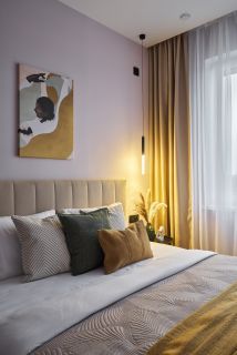 В отделке использованы мягкие благородные цвета и оттенки. Стильное и эргономичное пространство создает атмосферу спокойствия и расслабления!