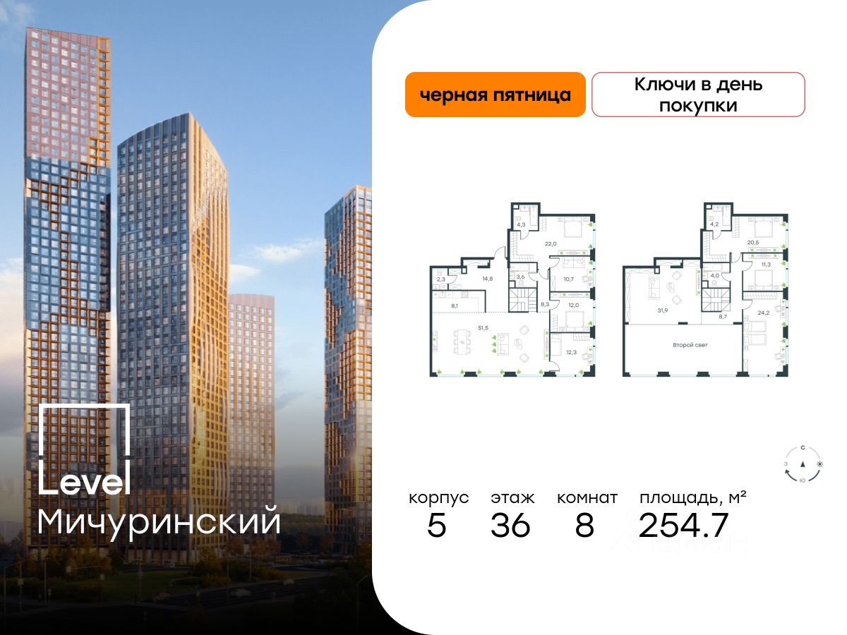 В жилом квартале, расположенном на границе с природным заказником "Долина реки Очаковки", продаётся многокомнатная квартира площадью 254.70 кв.м без отделки. Квартира расположена на 36 этаже 37-этажного корпуса Корпус 5 в жилом комплексе бизнес-класса Level Мичуринский (компания Level Group/Левел групп).