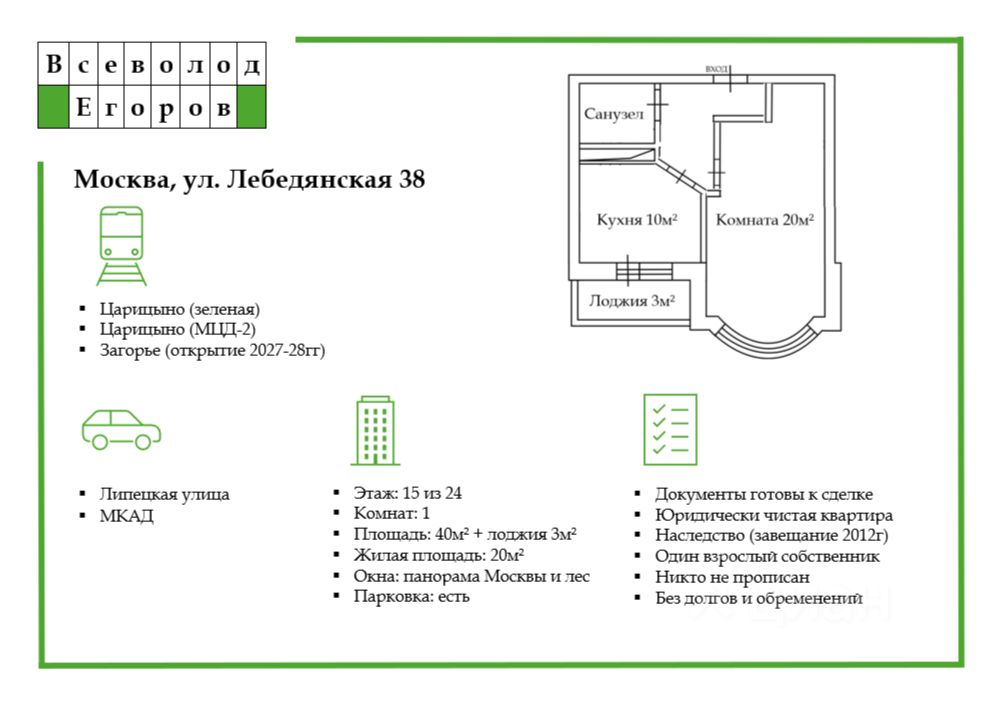 Шикарный панорамный вид на центр Москвы и зеленый массив!