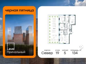 В готовом жилом комплексе на набережной Москвы-реки продается многокомнатная квартира площадью 134 кв.м без отделки. Квартира расположена на 19 этаже 32 этажного корпуса "Корпус Север" в жилом комплексе бизнес-класса Level Причальный (компания Level Group/Левел групп).