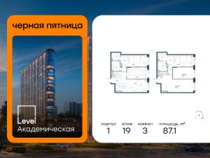 В Академическом районе продаётся 3-комнатная квартира площадью 87.10 кв.м без отделки. Квартира расположена на 19-м этаже 19-этажного жилого комплекса бизнес-класса Level Академическая (компания Level Group). В данной квартире вы можете оборудовать второй этаж (антресоль). Устройство антресольного этажа выполняется собственником самостоятельно как перепланировка квартиры. Нормативная площадь антресоли - не более 40% от площади квартиры.