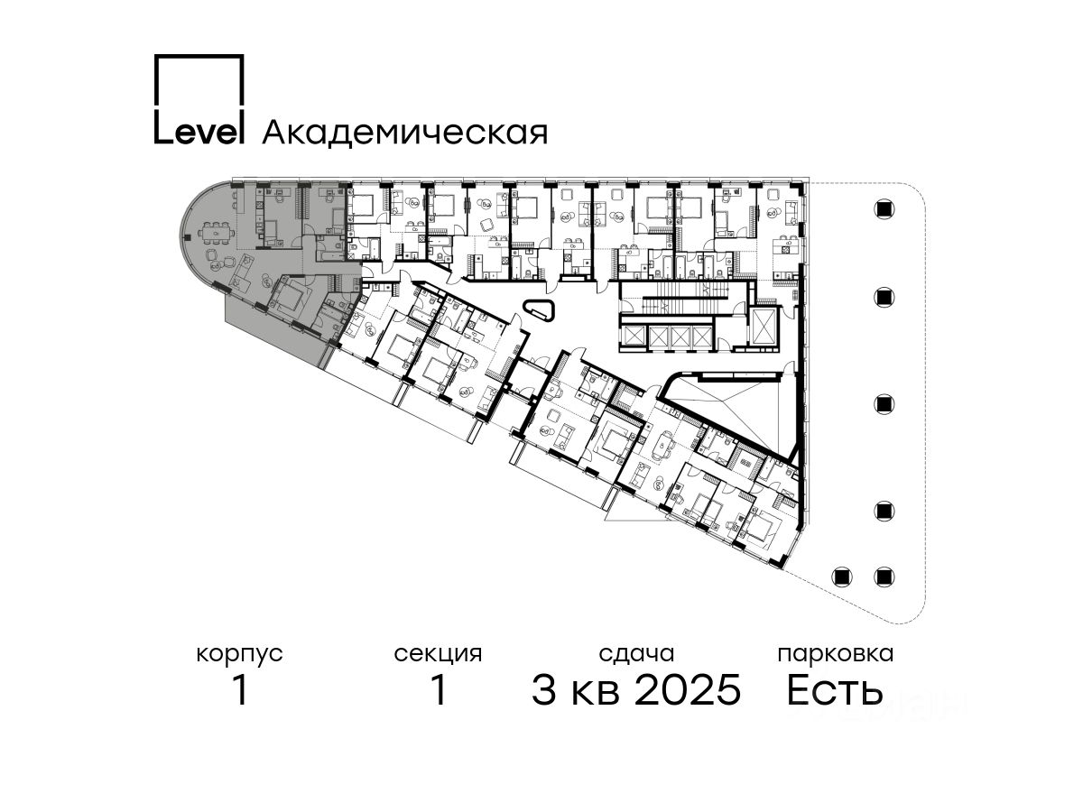 В Академическом районе продаётся 4-комнатная квартира площадью 126.50 кв.м без отделки. Квартира расположена на 2-м этаже 19-этажного жилого комплекса бизнес-класса Level Академическая (компания Level Group).