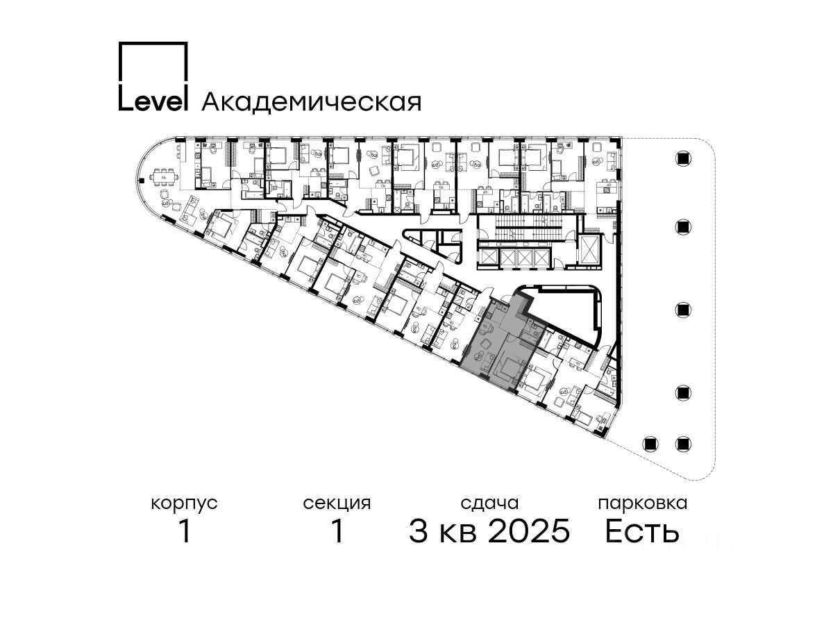 В Академическом районе продаётся 2-комнатная квартира площадью 46.30 кв.м без отделки. Квартира расположена на 4-м этаже 19-этажного жилого комплекса бизнес-класса Level Академическая (компания Level Group).