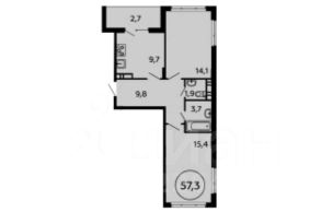 Общая площадь квартиры: 57.5кв.м (лоджия 2.7 кв.м).