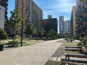 Современный дом с доступом по Face ID, домофоны в подъезде и на этаже, круглосуточная охрана и закрытый двор.