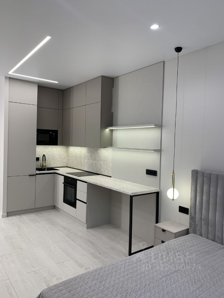 В квартире сделан дизайнерский ремонт с использованием качественных материалов и современных решений. Пространство студии грамотно организовано, что позволяет с комфортом разместить все необходимое для жизни. Совмещенный санузел оформлен в современном стиле, оснащен всей необходимой сантехникой.