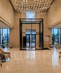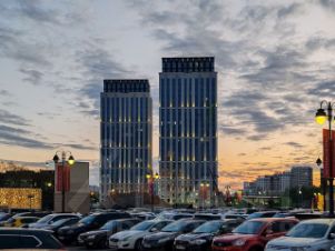 В башне 3 лифта, 2 из которых спускаются на паркинг.