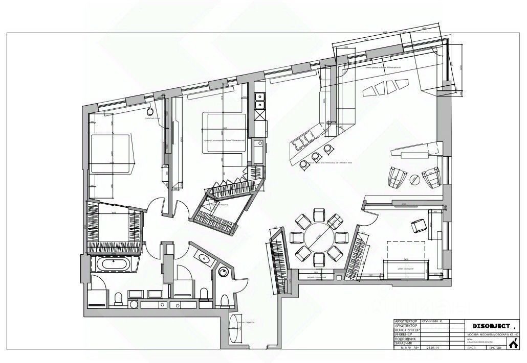 Планировка: гостиная, изолированная кухня, мастер-спальня с ванной и гардеробной, спальня с ванной комнатой, дополнительная спальня или кабинет, гостевой санузел, гардеробная.