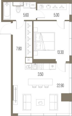 Однокомнатная квартира с предчистовой отделкой в ЖК "Северный Порт" на 3 этаже. Общая площадь: 58.1 кв.м., жилая: 13.3 кв.м., площадь просторной кухни-столовой: 26.4 кв.м. Квартира угловая, идеально подойдет любителям тишины и панорамных видов. В квартире один совмещенный санузел. Высота потолков 3.15 м.