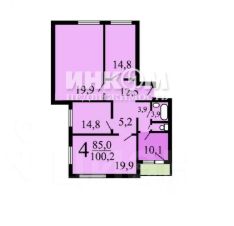 Удачная функциональная планировка: кухня с застекленной лоджией,4 просторных изолированных комнаты, раздельный санузел, широкие коридоры. Окна на 3 стороны света. Общая площадь квартиры 100 кв.м.