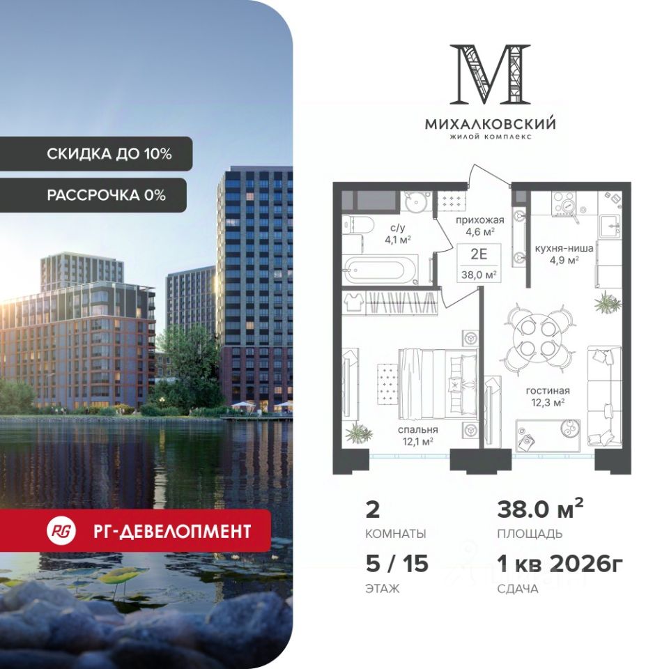 Скидка 9% при покупке квартиры! Цена указана с учетом максимального размера скидки.