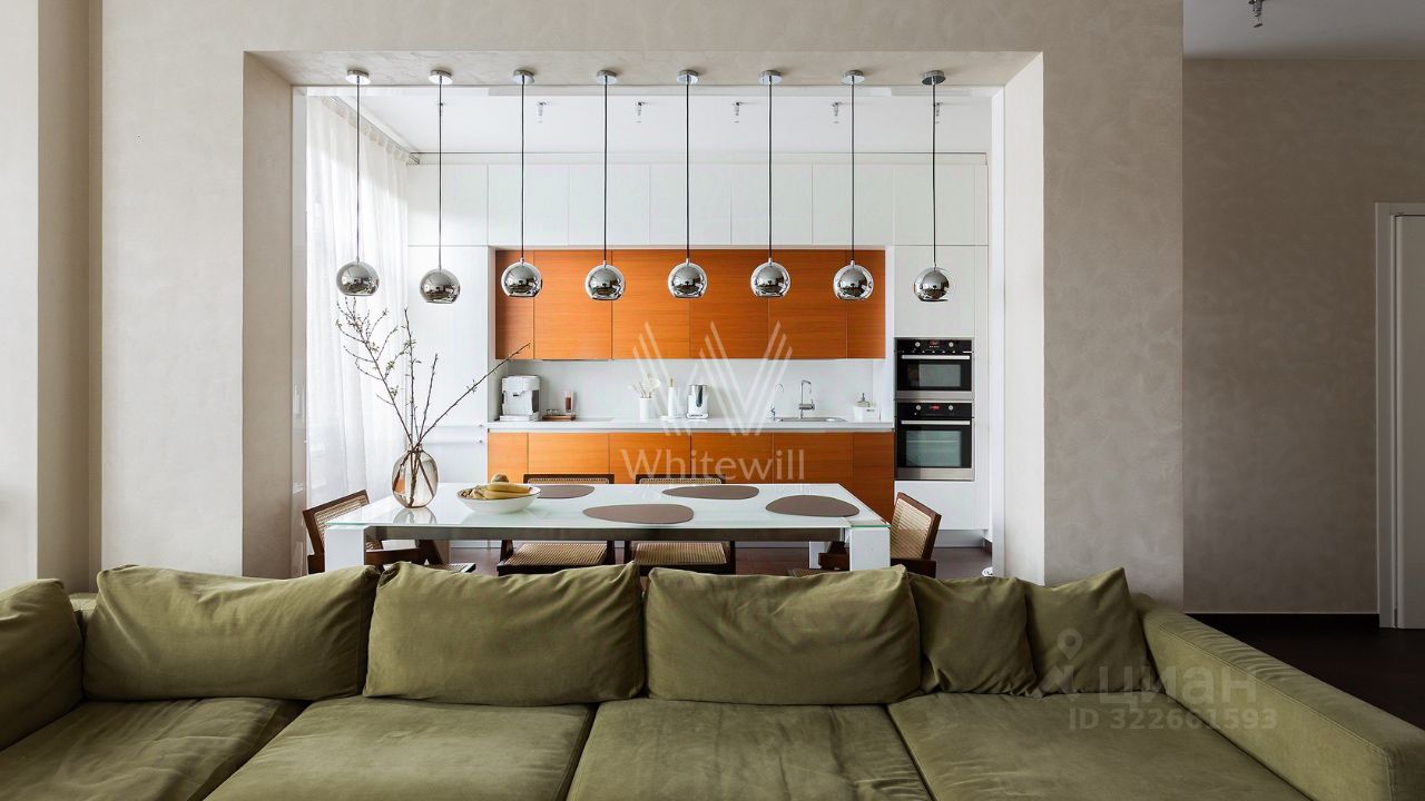 Квартира укомплектована итальянской и немецкой мебелью, изготовленной на заказ и бытовой техникой Kuppersbusch. Функциональная планировка включает кухню-гостиную, две спальни, гардеробную, два санузла и лоджию.