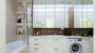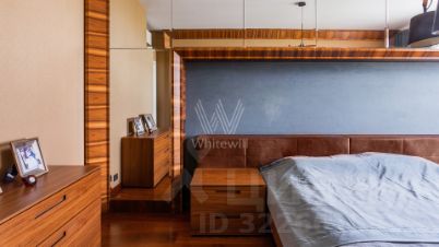 Выполнена дизайнерская отделка с использованием премиальных материалов, на полу выложены инженерная доска, мрамор и керамогранит с подогревом. Сантехника представлена брендом Villeroy & Boch.