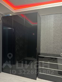 В спальне ремонт в темных оттенках для комфортного сна. Подсветка потолка, подсвечиваемая полка над спальной зоной. Большой, очень вместительный шкаф для одежды. (Комод забираем).