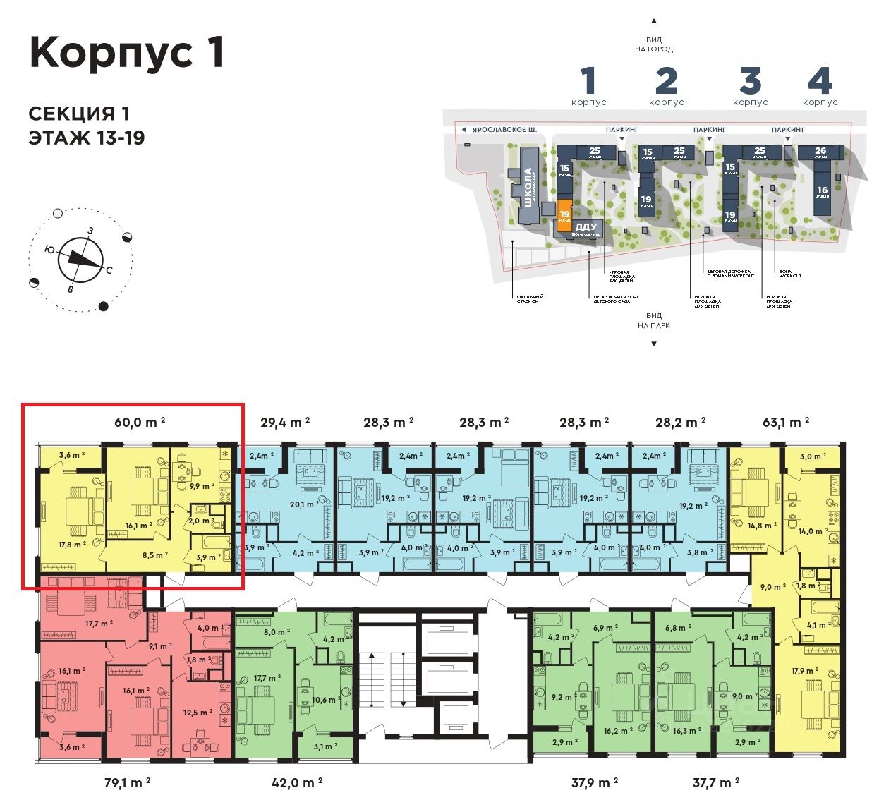 Двухкомнатная квартира комфорт-класса 60 кв.м. на 19-м этаже 19-ти этажного дома, в ЖК Сказочный лес, квартира расположена в 1-м корпусе 1-я секция. ЖК представляет собой 4 корпуса переменной этажности, коммерческий детский сад, наземная парковка (одно машиноместо в подарок сроком на 5 лет в счёт неустойки), общеобразовательная школа.