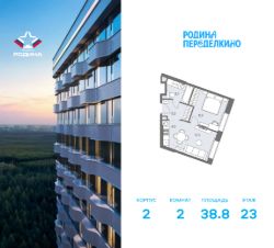 Продаётся 2-комнатная квартира площадью 38.8 м² на 23 этаже в Жилом Комплексе "Родина Переделкино".