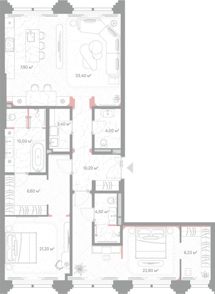 В проекте предусмотрена предчистовая отделка White Box Deluxe. Исключительные подготовительные работы для создания уникального интерьера. Премиальная Smart-инженерия и оборудование. Предчистовая отделка каждой квартиры дает возможность адаптировать пространство под свои потребности и индивидуальный дизайн-проект. Каркасные перегородки позволяют произвести максимально бесшумные и чистые работы при их переносе или адаптации розеточной сети. Дополнительно возможно выбрать вариант из коллекции финишной отделки от мирового дизайн-бюро НВА - эклектичный Modern Light или Modern Dark.