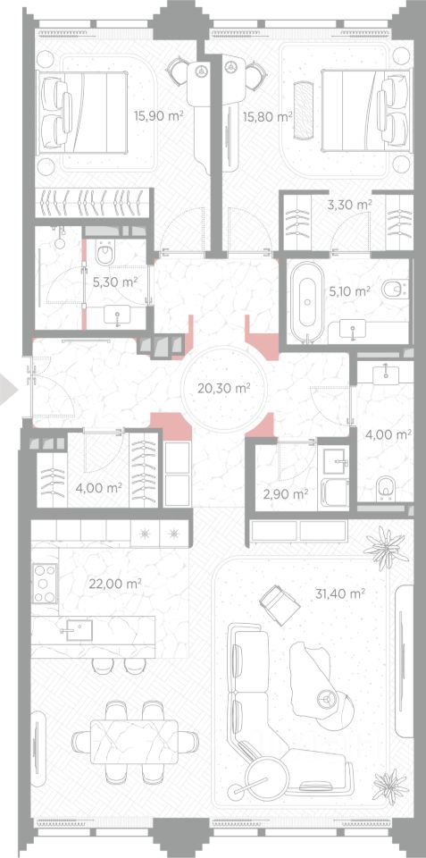 В проекте предусмотрена предчистовая отделка White Box Deluxe. Исключительные подготовительные работы для создания уникального интерьера. Премиальная Smart-инженерия и оборудование. Предчистовая отделка каждой квартиры дает возможность адаптировать пространство под свои потребности и индивидуальный дизайн-проект. Каркасные перегородки позволяют произвести максимально бесшумные и чистые работы при их переносе или адаптации розеточной сети. Дополнительно возможно выбрать вариант из коллекции финишной отделки от мирового дизайн-бюро НВА - эклектичный Modern Light или Modern Dark.