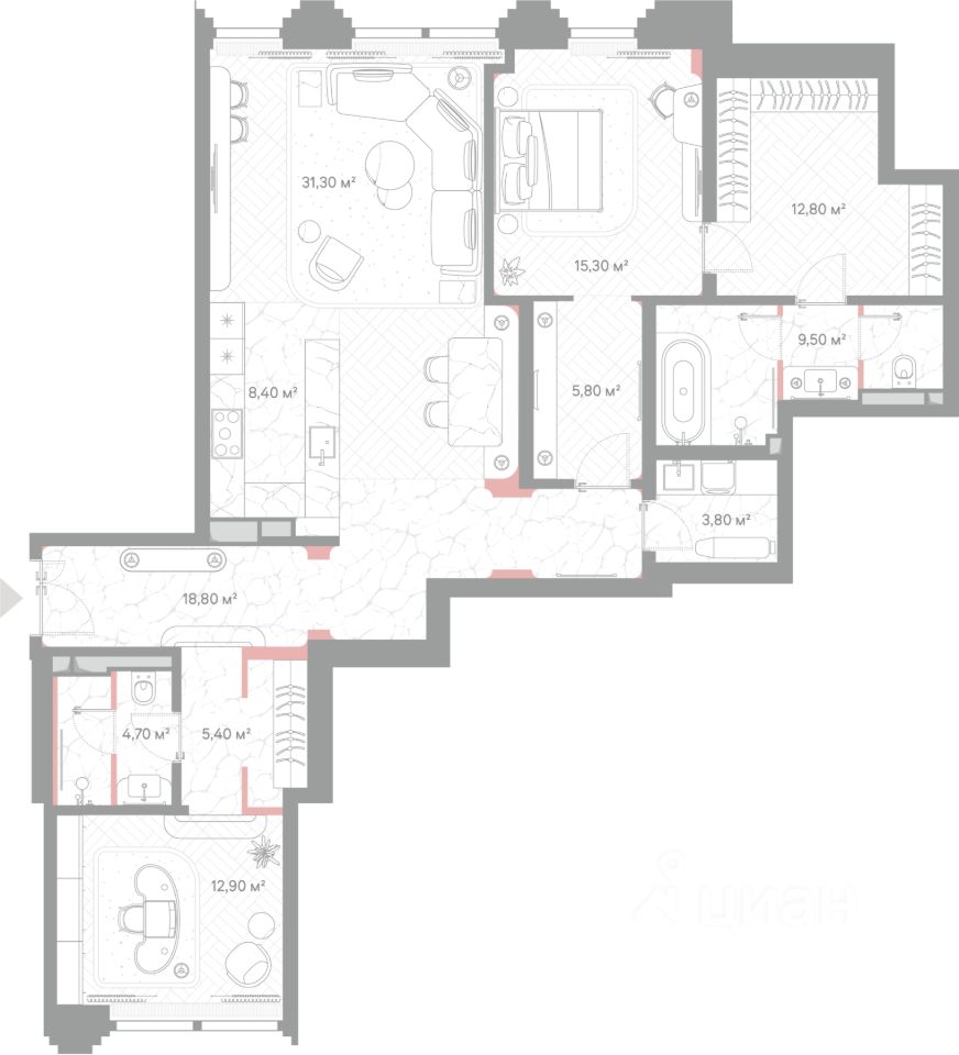 Nicole Club по своей архитектуре обладает неординарной коллекцией планировочных решений. Среди, которых двухуровневые пентхаусы с вторым светом, видовые квартиры с уникальным панорамным остеклением с видом на Кремль, квартиры со сложной геометрией, отвечающие запросу на нестандартные интерьерные решения.
