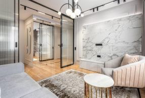 * Дизайн имеет мягкую фактуру в сочетании с деревом и мрамором.