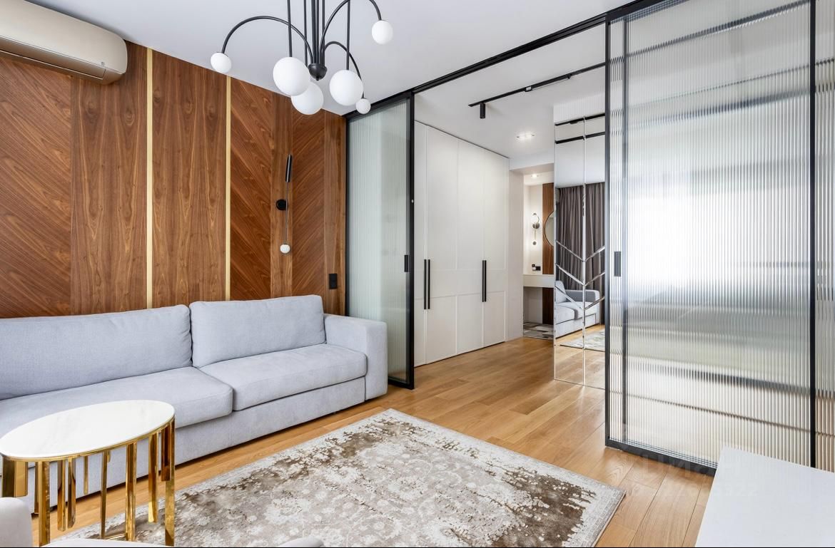 - 2 изолированные комнаты (гостиная со стеклянными раздвижными перегородками и укомплектованная спальня). Установлены кондиционеры со сплит-системой.