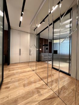 - холл зеркальный расширяет пространство, в разное время суток даёт свою цветовую гамму света;