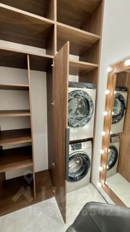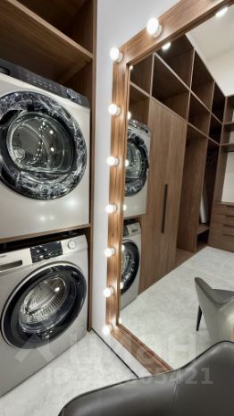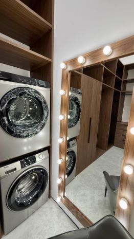 Постирочную зону — скрыто оборудована стиральная и сушильная машина, аккуратно встроены в шкафы, что обеспечивает комфорт и порядок