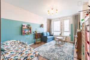 ОБ ОБЪЕКТЕ: Продаётся роскошная видовая квартира с дизайнерским ремонтом в ЖК "Михайловский парк". Общая площадь 97,3 м². Формат квартиры 4 ЕВРО: три изолированные комнаты плюс просторная кухня-гостиная и два санузла. Квартира находится на 25-м этаже, виды из окон - потрясающие. Грамотная планировка. Продуманный ремонт, современные дизайнерские решения в сочной и свежей цветовой палитре.