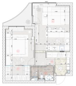 - Освещение: Продуманная многоуровневая система света построена на испанских светильниках, которые работают как сценарное освещение и как арт-объекты. Светильники Aromas (Испания)