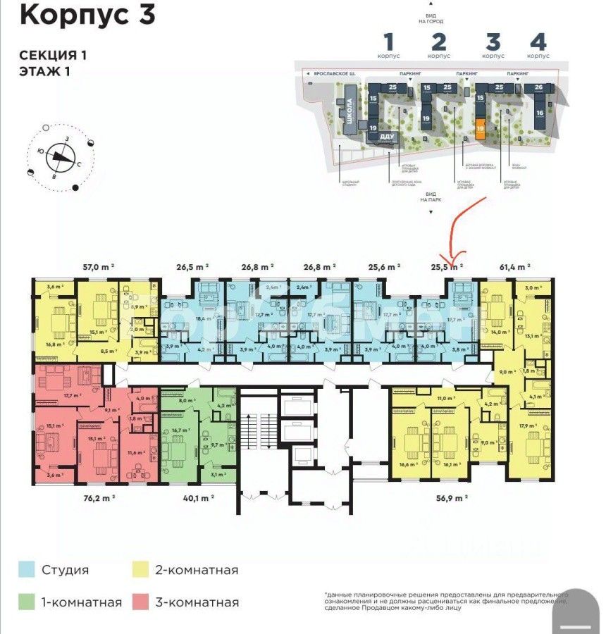 Студия 25,7 м² в новом ЖК на опушке сказочного леса