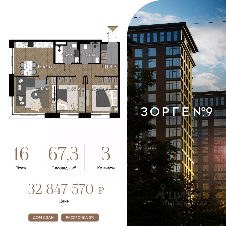 "Зорге 9" — готовый квартал апартаментов с премиальными сервисами на Ходынке. В трех корпусах с панорамными окнами предусмотрены уникальные форматы площадей, удовлетворяющие самый взыскательный вкус. В 7 минутах ходьбы от "Зорге 9" расположены 4 станции метро: Полежаевская", "Хорошевская", "Зорге" и "Хорошево". До делового центра "Москва-Сити" 10 минут на автомобиле. Простота форм, строгие линии, панорамные окна, архитектурное освещение и арт-объекты поддержат атмосферу роскоши и комфортной жизни на Ходынке. Именно за яркую архитектуру апарт-комплекс "Зорге 9" получил престижную международную премию European Property Awards. Комплекс полностью введен в эксплуатацию. "Зорге 9" — территория инноваций. Высокие потолки и панорамные окна Guardian ClimaGuard Solar с энергоэффективным "умным" напылением. Предусмотрен ряд премиальных сервисов: вход по Face ID, мобильное приложение резидента, дающее доступ ко всем услугам в один клик, 500 видеокамер на территории, двухуровневый подземный паркинг с автоматическим шлагбаумом, зарядкой для электромобилей, велосейфом и станцией подкачки шин. В "Зорге 9" можно рассмотреть варианты площадей от 27 до 81 кв. м, свободной планировки, с окнами в пол и высотой потолков до 4,3 м, а также уникальные форматы пространств. Апартаменты с террасами позволят создать дополнительное рабочее пространство или зону отдыха на свежем воздухе, а тканевые маркизы помогут создать тень и повысить уровень приватности. Угловое остекление станет особой изюминкой и украсит любой интерьер. На последних этажах предусмотрены пентхаусы с каминами и выходами на кровлю: от 150 кв. м жилья high-уровня с максимальным уровнем инсоляции — на потолках в пентхаусах появятся так называемые "световые фонари". "Зорге 9" СДАН, все корпуса введены в эксплуатацию.