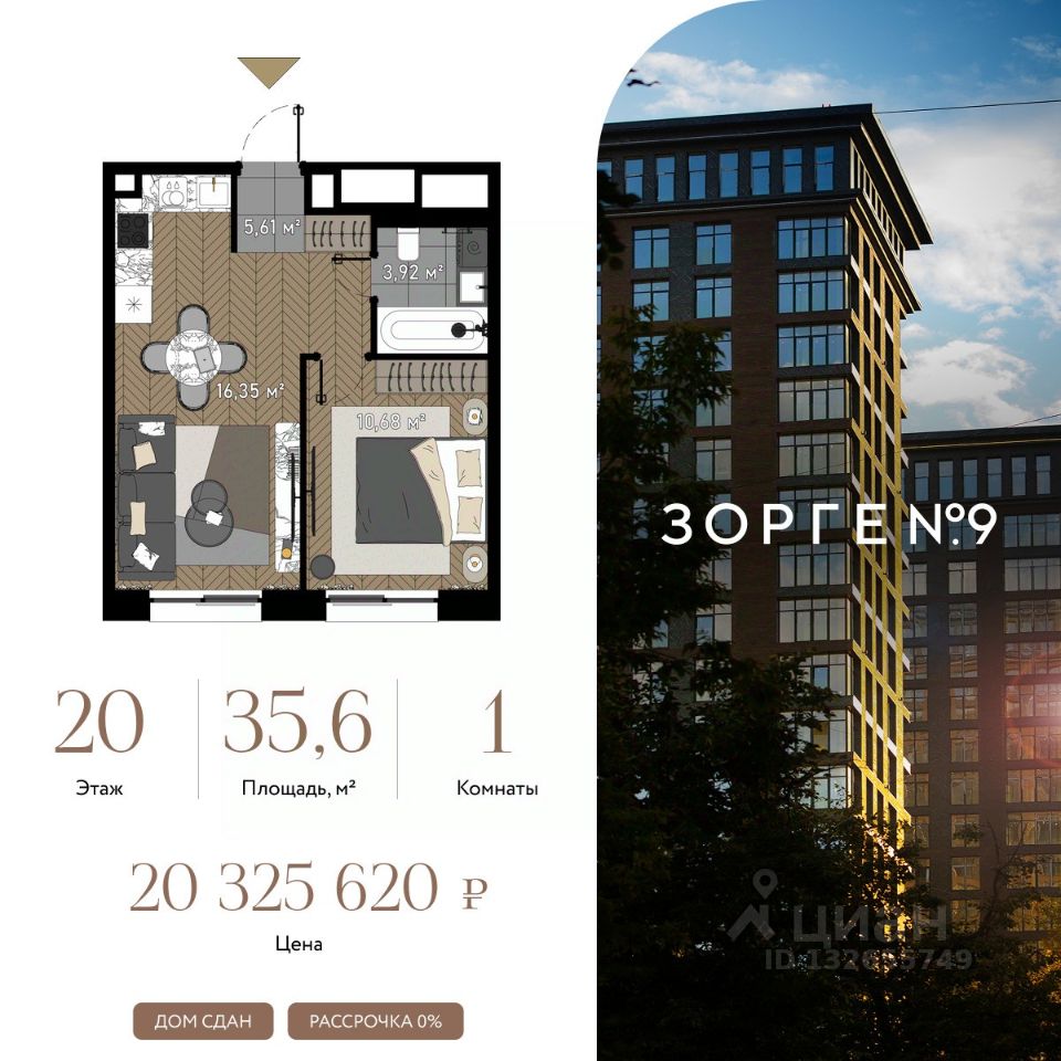 "Зорге 9" — готовый квартал апартаментов с премиальными сервисами на Ходынке. В трех корпусах с панорамными окнами предусмотрены уникальные форматы площадей, удовлетворяющие самый взыскательный вкус. В 7 минутах ходьбы от "Зорге 9" расположены 4 станции метро: Полежаевская", "Хорошевская", "Зорге" и "Хорошево". До делового центра "Москва-Сити" 10 минут на автомобиле. Простота форм, строгие линии, панорамные окна, архитектурное освещение и арт-объекты поддержат атмосферу роскоши и комфортной жизни на Ходынке. Именно за яркую архитектуру апарт-комплекс "Зорге 9" получил престижную международную премию European Property Awards. Комплекс полностью введен в эксплуатацию. "Зорге 9" — территория инноваций. Высокие потолки и панорамные окна Guardian ClimaGuard Solar с энергоэффективным "умным" напылением. Предусмотрен ряд премиальных сервисов: вход по Face ID, мобильное приложение резидента, дающее доступ ко всем услугам в один клик, 500 видеокамер на территории, двухуровневый подземный паркинг с автоматическим шлагбаумом, зарядкой для электромобилей, велосейфом и станцией подкачки шин. В "Зорге 9" можно рассмотреть варианты площадей от 27 до 81 кв. м, свободной планировки, с окнами в пол и высотой потолков до 4,3 м, а также уникальные форматы пространств. Апартаменты с террасами позволят создать дополнительное рабочее пространство или зону отдыха на свежем воздухе, а тканевые маркизы помогут создать тень и повысить уровень приватности. Угловое остекление станет особой изюминкой и украсит любой интерьер. На последних этажах предусмотрены пентхаусы с каминами и выходами на кровлю: от 150 кв. м жилья high-уровня с максимальным уровнем инсоляции — на потолках в пентхаусах появятся так называемые "световые фонари". "Зорге 9" СДАН, все корпуса введены в эксплуатацию.