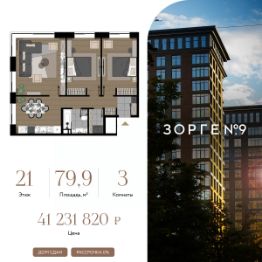 "Зорге 9" — это элегантные лобби с дизайнерской отделкой премиальными материалами, высокие потолки, панорамные окна, благоустроенный просторный двор в одном из лучших районов для жизни в Москве. Роскошная инфраструктура комплекса: консьерж-сервис, подземный паркинг, цифровой лифт, вход по Face ID, свой фитнес-клуб с бассейном, парк с сухим фонтаном, магазины и рестораны.