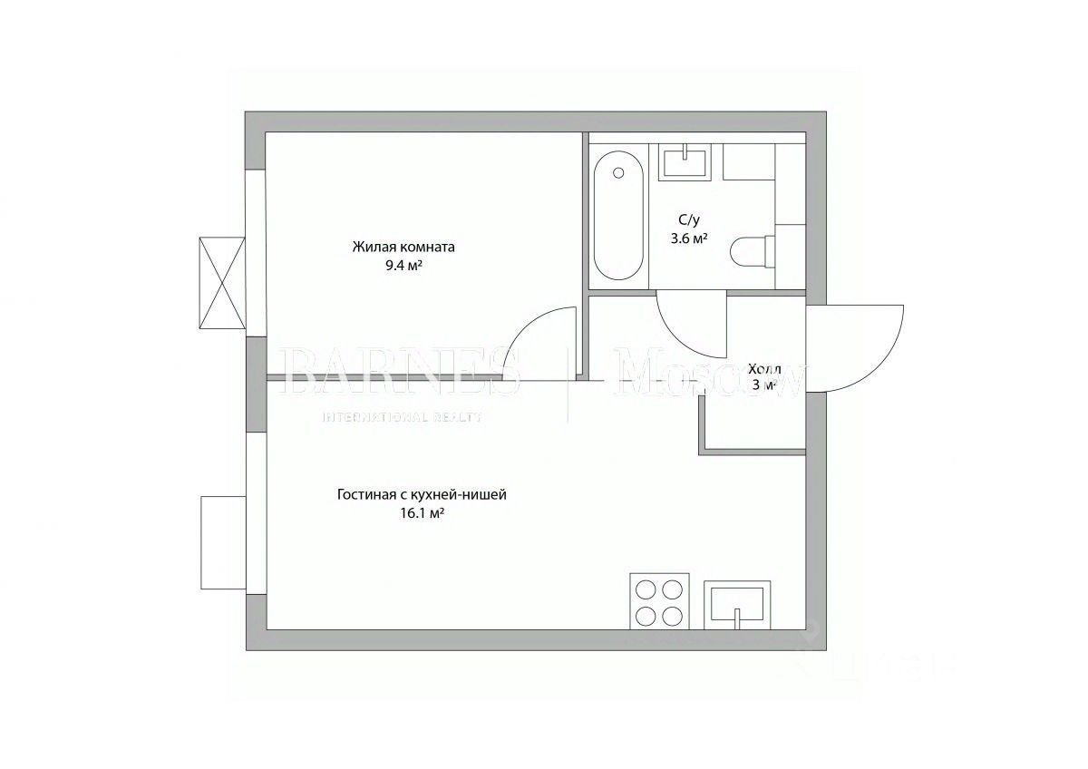 Комфортная квартира площадью 32.1 кв.м. с просторной гостиной на 7 этаже в жилом комплексе "Сигнальный 16", расположенном напротив Ботанического сада.
