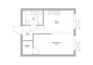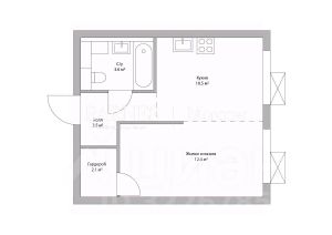 Функциональное планировочное решение: просторная комната с гардеробной, кухня, совмещенный санузел, прихожая с выделенной зоной для гардероба. Окна квартиры ориентированы во двор.