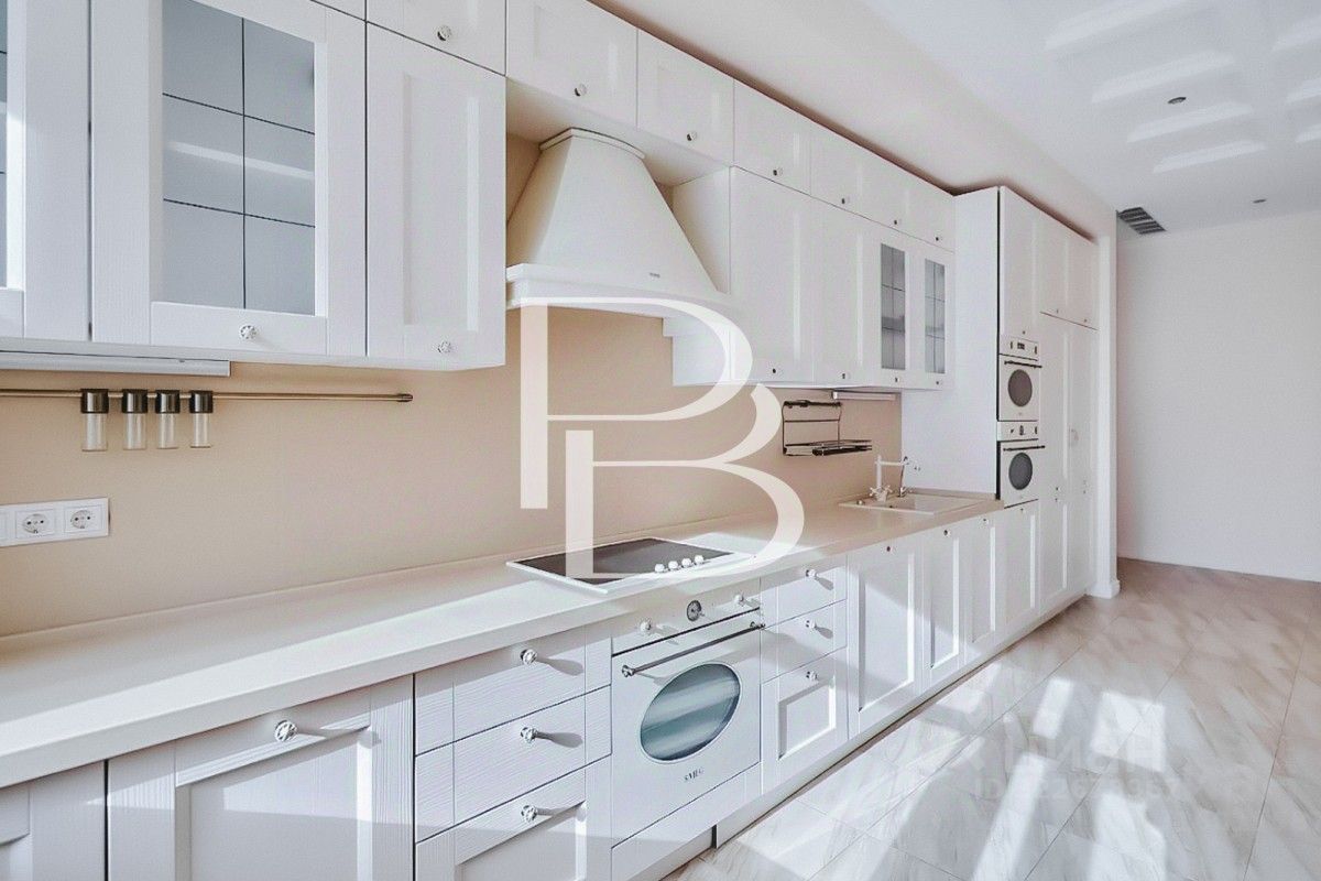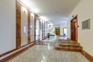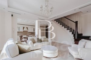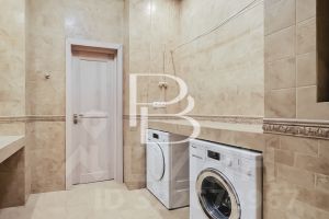 На втором уровне расположены две спальни со своими ванными комнатами, кабинет, гардеробная комната. Высота потолков 3.2 м. В квартире установлена система кондиционирования.