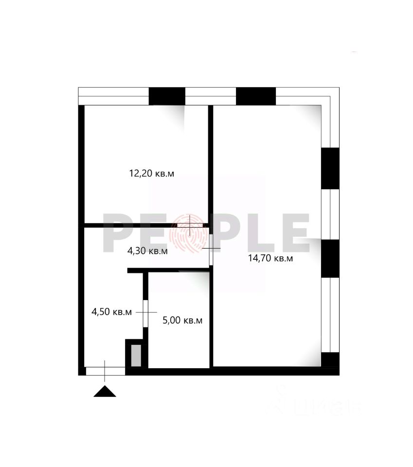Площадь квартиры — 49,5 м², расположена на высоком первом этаже.