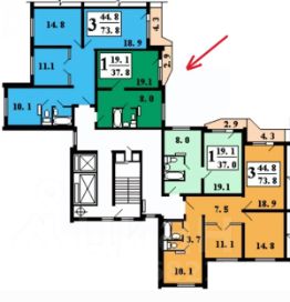 1)Общая площадь 37.7 кв.м, кухня 8.2 кв.м.