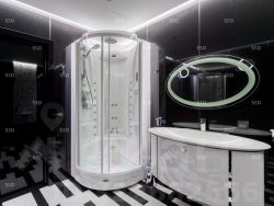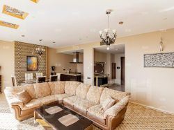Планировка: спальня 24,7 м2 с гардеробной 8,9 м2 и санузлом 8,8 м2. Кухня столовая и гостиная в виде студии 43,6 м2, дополнительно гостевой с/у.