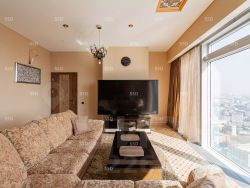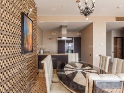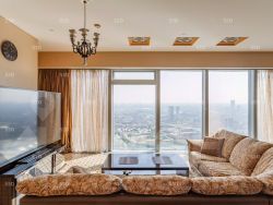 Эксклюзивный дизайнерский ремонт. Апартаменты полностью обставлены итальянской мебелью Turri, ручной работы выложенный штучный паркет, мраморная ванная, кухня со встроенной техникой Miele, мраморный пол, эксклюзивные итальянские люстры, торшеры и бра, витражи на полках. Панорамный вид на Москва реку, МГУ