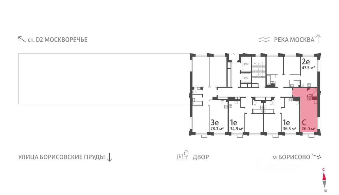 Продается квартира-студия общей площадью 26 кв. метров на 4 этаже жилого комплекса ВЕЙВ. Комплекс располагается на юге Москвы в районе Москворечье-Сабурово. В пешей доступности расположены станция МЦД "Москворечье" и станция метро "Борисово". Для автомобилистов есть удобное сообщение с Каширским шоссе.