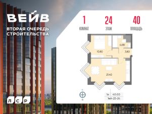 Продается 1-комнатная квартира общей площадью 40 кв. метров на 24 этаже жилого комплекса ВЕЙВ. Комплекс располагается на юге Москвы в районе Москворечье-Сабурово. В пешей доступности расположены станция МЦД "Москворечье" и станция метро "Борисово". Для автомобилистов есть удобное сообщение с Каширским шоссе.