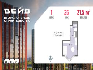 Продается квартира-студия общей площадью 21.5 кв. метров на 26 этаже жилого комплекса ВЕЙВ. Комплекс располагается на юге Москвы в районе Москворечье-Сабурово. В пешей доступности расположены станция МЦД "Москворечье" и станция метро "Борисово". Для автомобилистов есть удобное сообщение с Каширским шоссе.