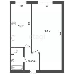 Планировка квартиры функциональна и продумана: изолированная кухня, совмещенный санузел с современной отделкой, просторная комната и отдельная прихожая.