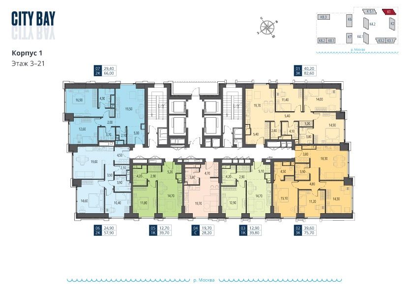 Концепция жилого комплекса City Вау - настоящий город в городе с отлично развитой инфраструктурой и собственной благоустроенной набережной. На территории жилого комплекса расположено пять кварталов - Atlantic, Pacific, Indian, North, Cliff.